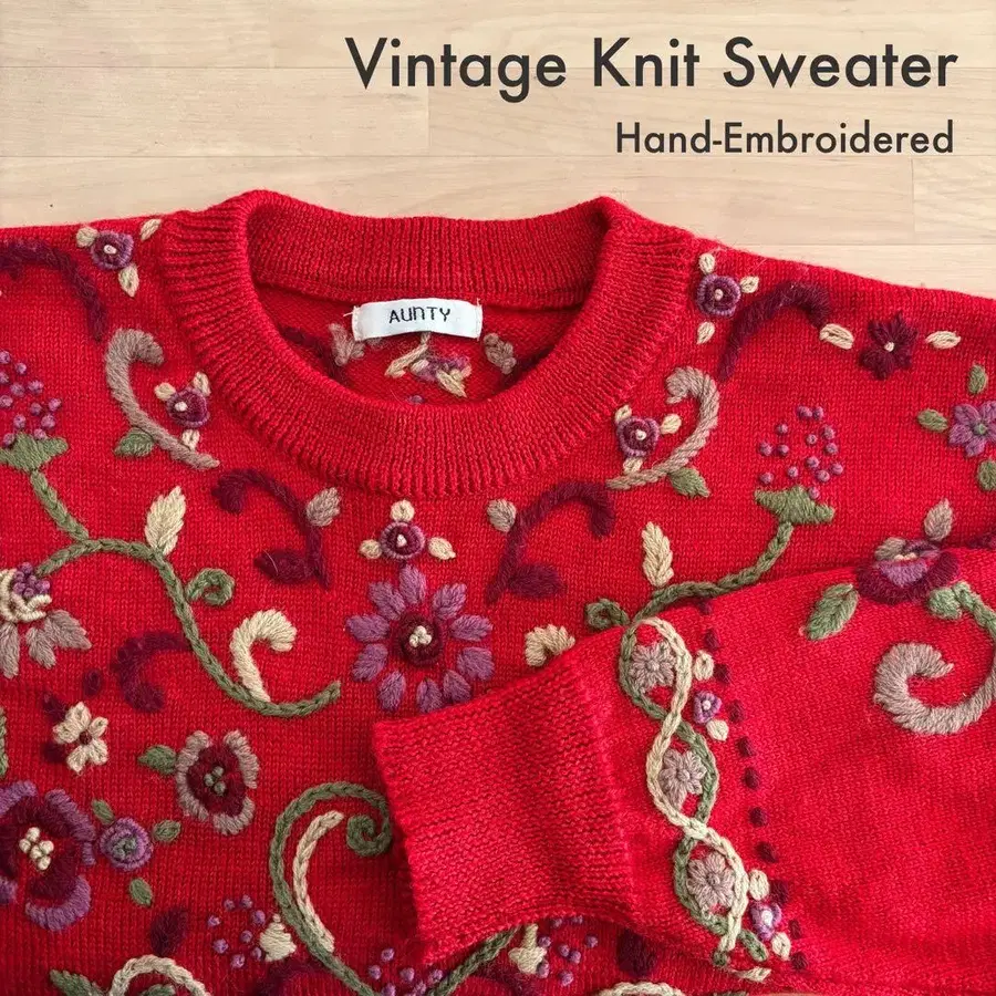 AUNTY 빈티지 손 자수 니트 스웨터 구제 의류 빨간 니트 크리스마스
