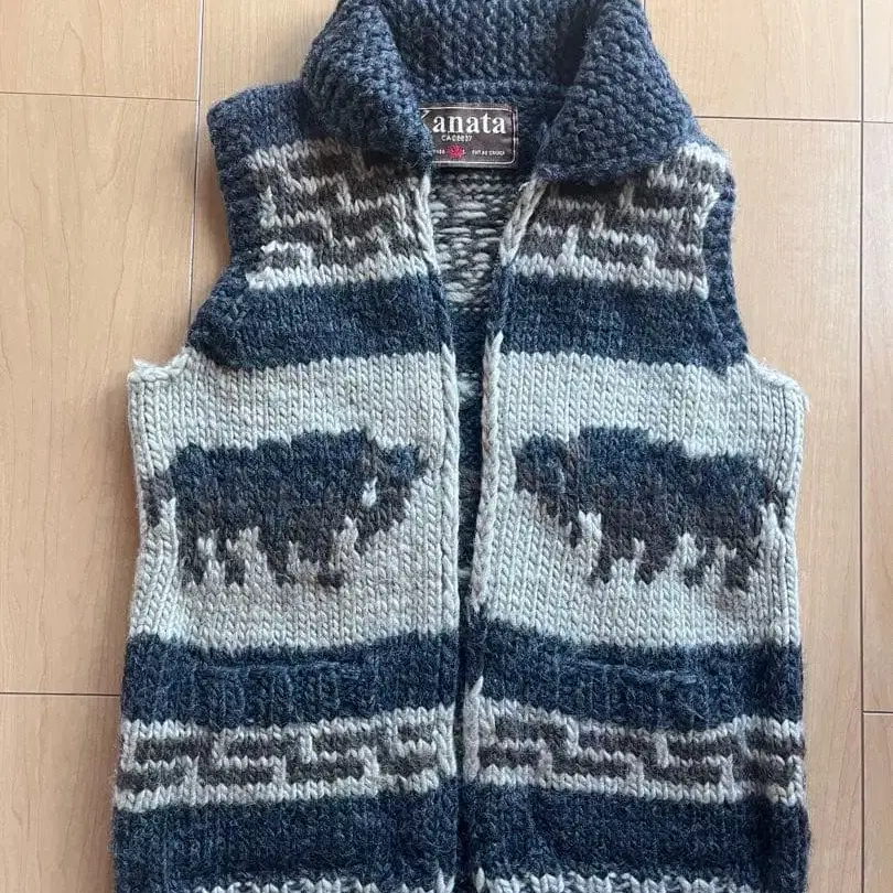 Kanata 버팔로 패턴 니트 베스트 네이비/그레이
