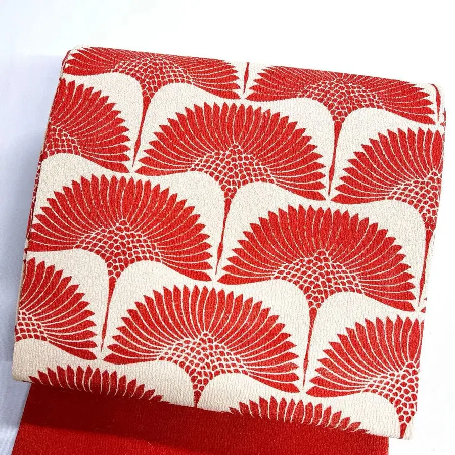 나고야 오비 크레이프 원단 학 학 모티브 홍백 기모노 123tz