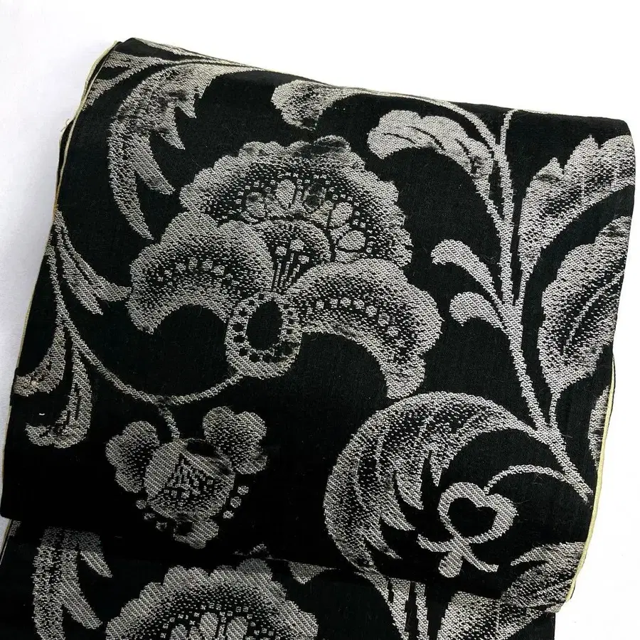 후쿠로 오비 앤티크 당화 무늬 블랙 베이스 리메이크 기모노 123tz