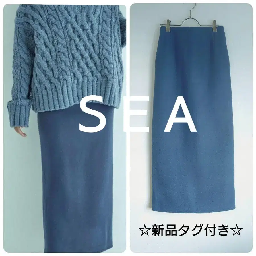 [택 포함 새상품] SEA 멜톤 펜슬 스커트 울 블루 일본제