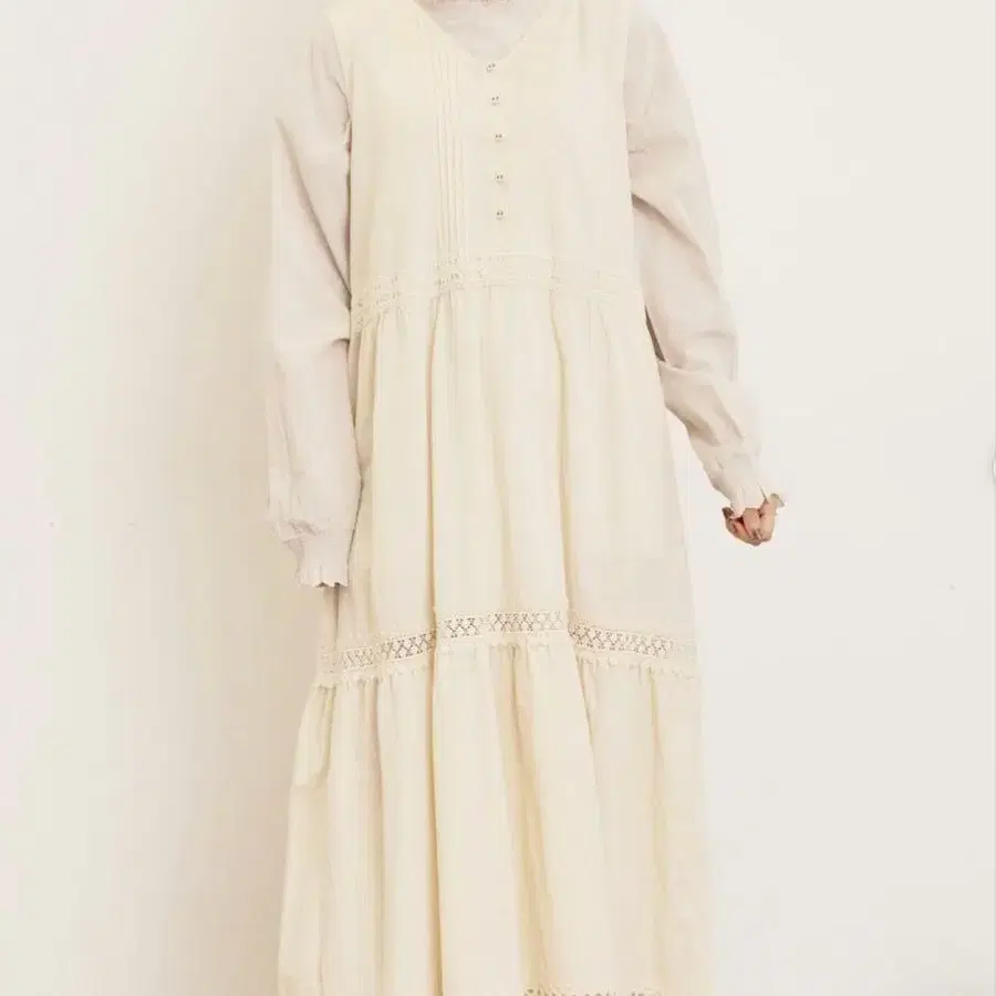 사만사 모스모스 레이스 티어드 슬리브리스 원피스 아이보리