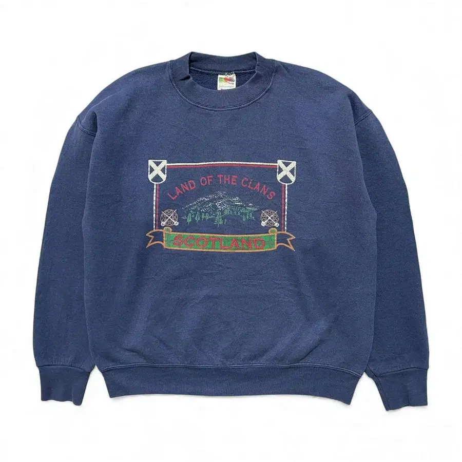 구제 의류 멕시코제 90S 00S 스코틀랜드 크루넥 빈티지 맨투맨 트레이닝복 프린트 네이비 남성용 L BD3077