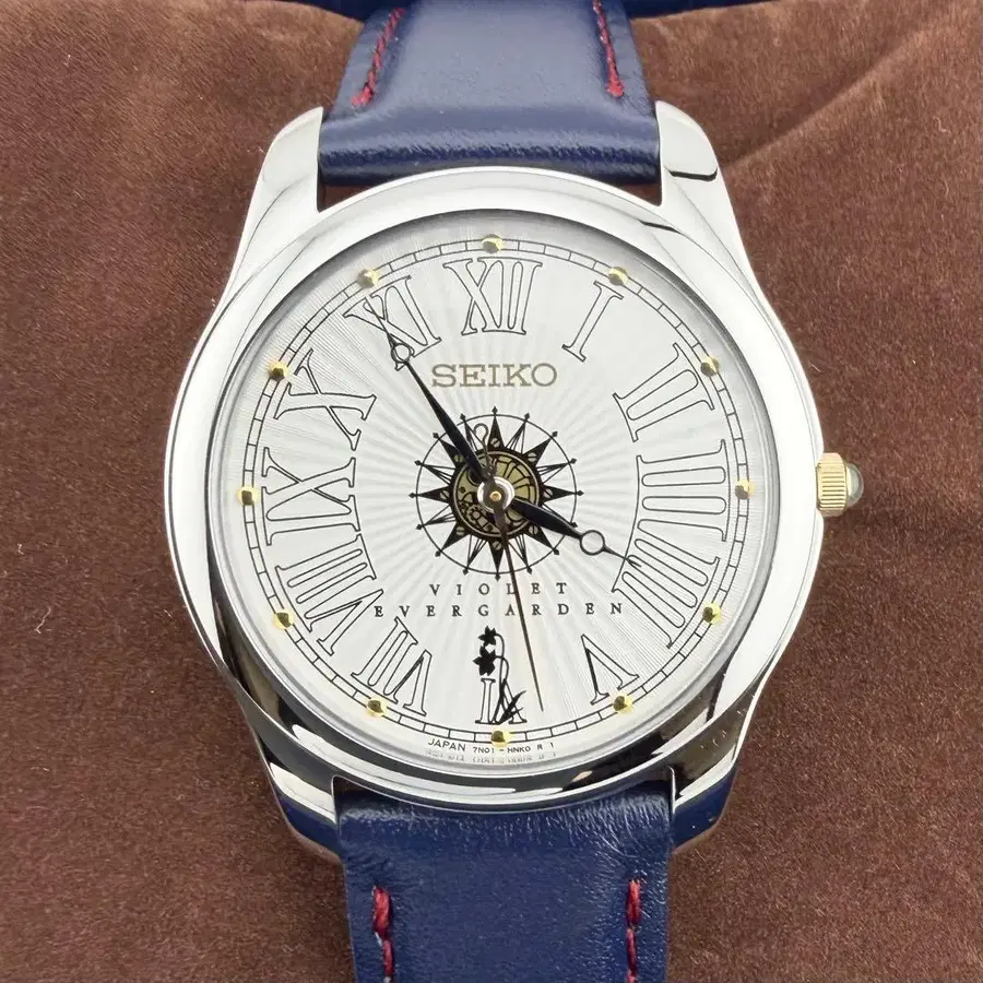 미사용 보관품 SEIKO x 바이올렛 에버가든 세이코 콜라보 모델 메모리얼 워치 7N01-HDV0 시리얼 포함 한정판 1,000개 가죽 밴드 여성용 남성용 쿼츠 손목시계