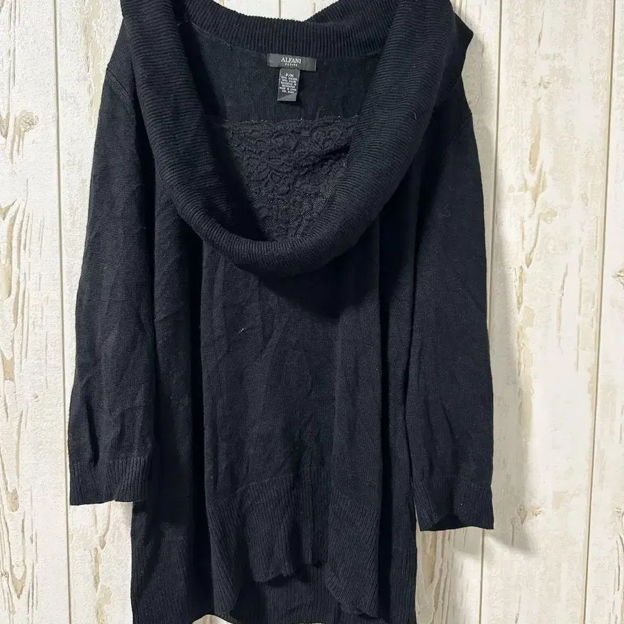 자동 번역되었어요. 원문보기오프숄더 디자인이 특징인 블랙 니트 스웨터.