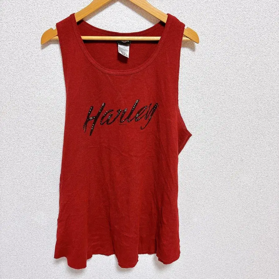 자동 번역되었어요. 원문보기레드 Harley-Davidson 탱크탑, XL 사이즈, 스팽글 로고 디자인.