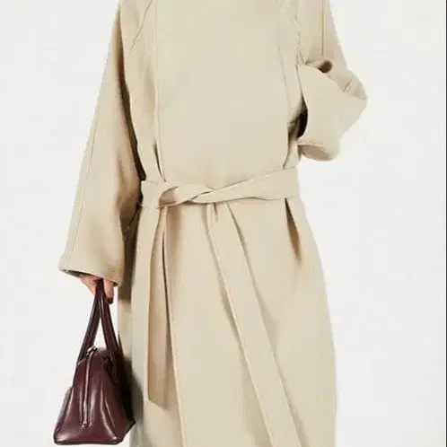 하이넥 베이지 롱 코트, 오버사이즈 디자인으로 스타일리시.