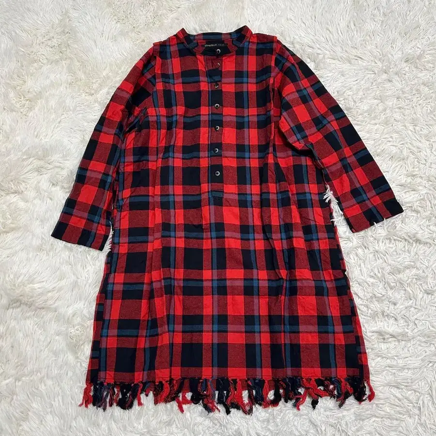 체크 무늬 롱 셔츠 원피스 하프 버튼 포켓 부착