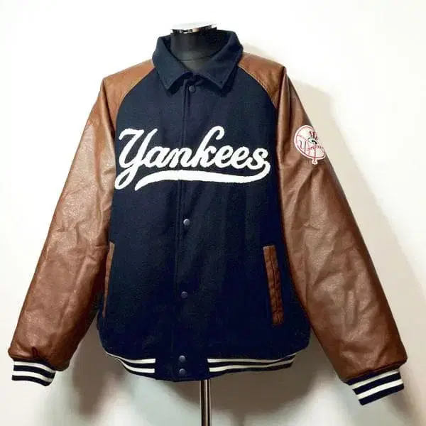 [ 양키스 페르슈 바시티 자켓 XL 콜라보 블루종 패딩 자켓 와펜 로고 Perushu MLB New York Yankees 브라운 네이비 기모 빅 실루엣 ]