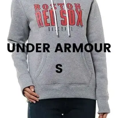 S 레어 한정품 언더아머 여성용 MLB 풀오버 맨투맨 후디 검 색상 속기모 후드티 레드삭스 그레이 SM