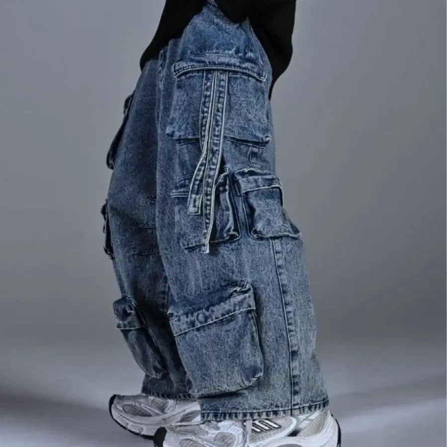 멀티 포켓 타입 카고 팬츠가 유행인 지금, 총 13개의 포켓과 악센트가 되는 지혈 테이프를 탑재하여 압도적인 디자인성을 실현했습니다.