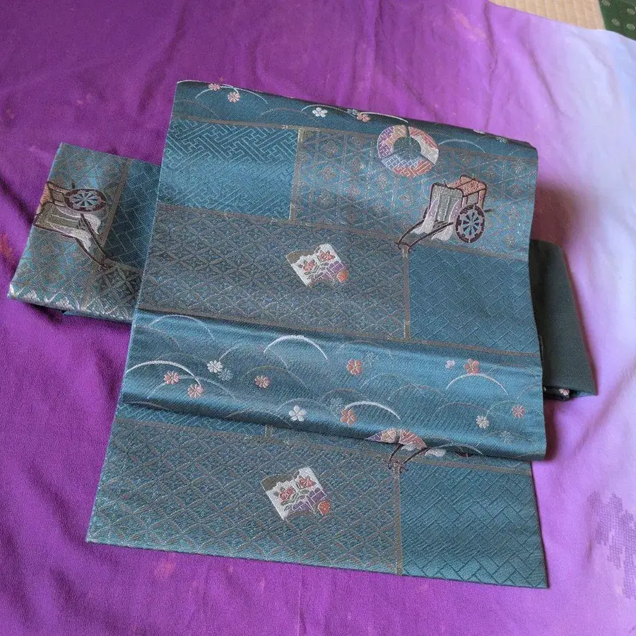 청록색 후쿠로 오비 꽃 무늬