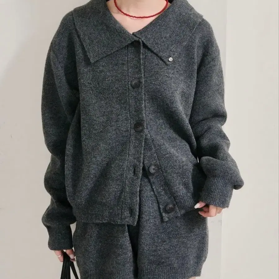 mystic 카라 부착 플레이트 니트 가디건 그레이