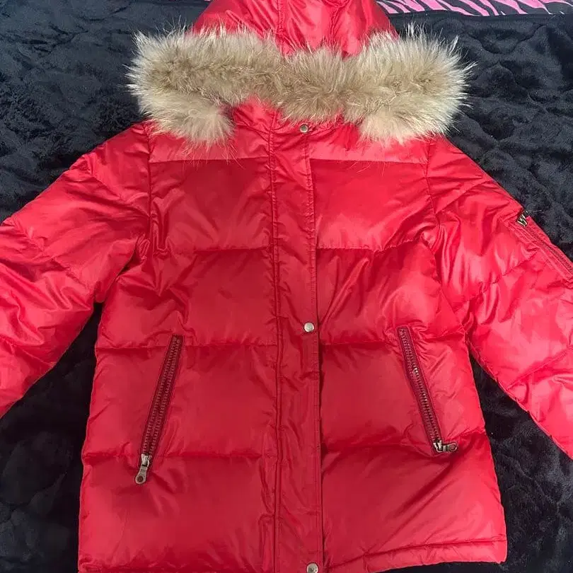 빨간 레드 퍼(fur) 부착 다운 자켓