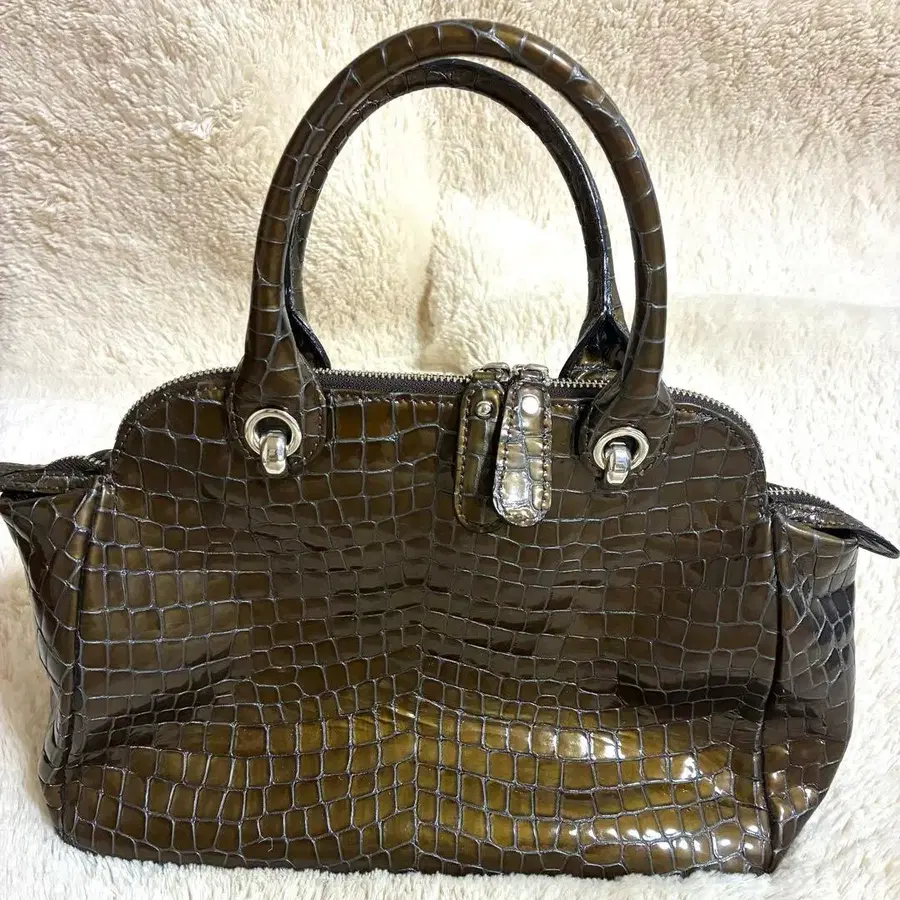 긴자 카네마츠 엠보 가죽 핸드백 브라운 숄더 없음