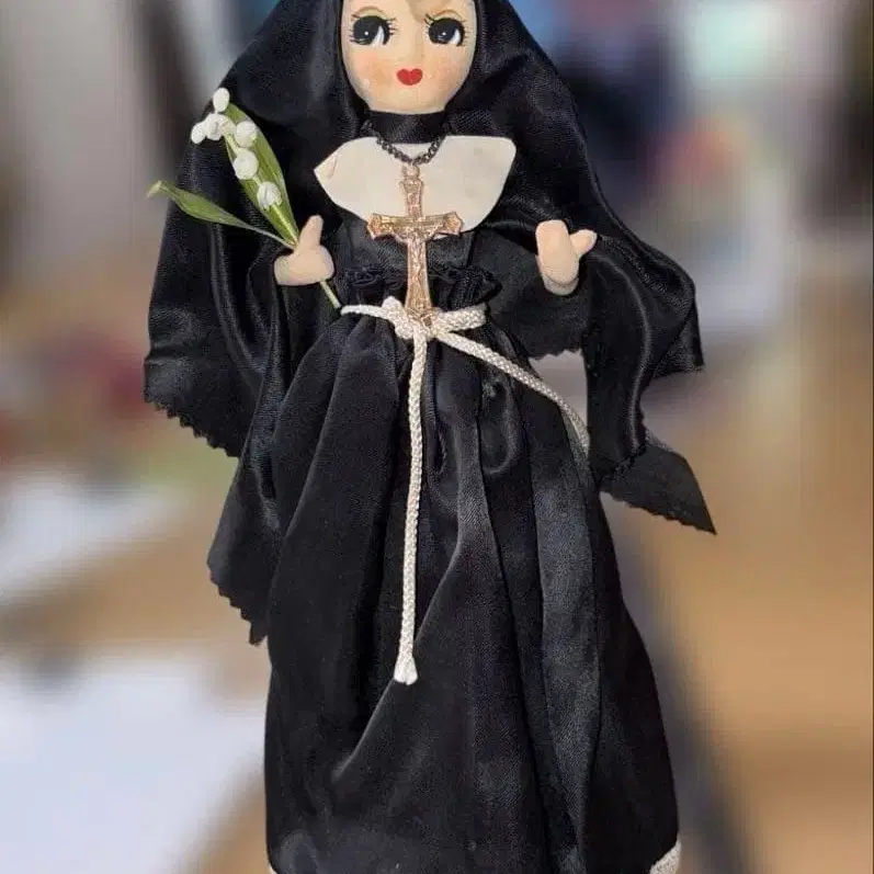 앤티크 수녀 인형입니다. 수녀 피규어 블랙 쇼와 레트로