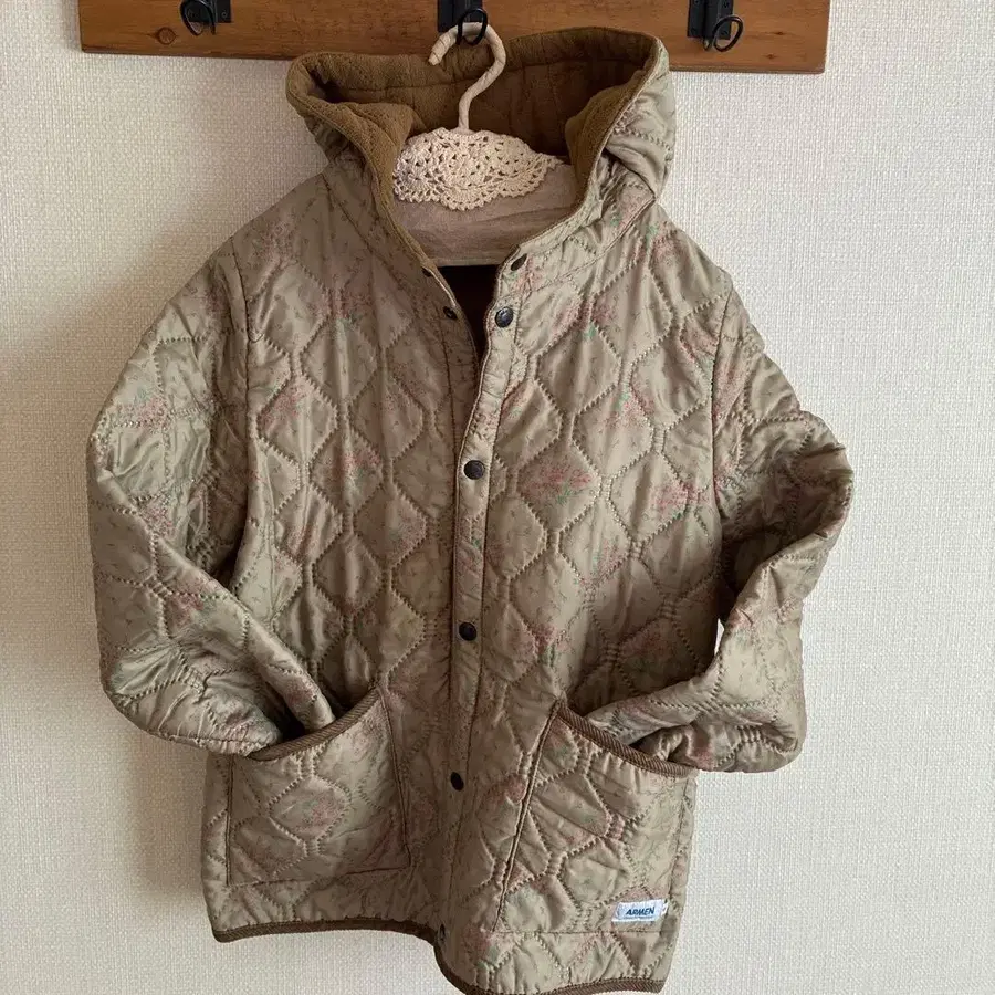 ARMEN 꽃무늬 퀼팅 자켓 베이지 후드 부착
