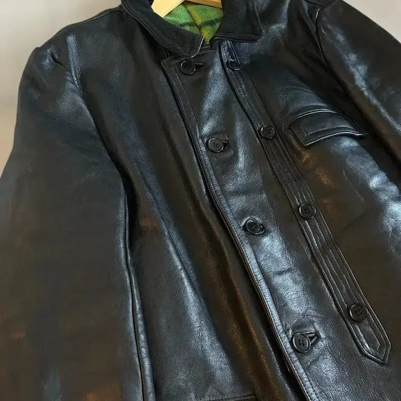 더 이상 설명이 필요 없는 프렌치 빈티지의 대표격. 울 옷깃의 코르뷔지에 자켓. 상태는 매우 좋다고 생각합니다. 크림 등으로 관리도 더해져, 가죽 상태도 좋습니다. 코르뷔지에 자켓의 울 옷깃은 오래된 연대의 모델에 많으며, 소매 안쪽 등도 깨끗한 컨디션인 것은 드물지 않을까 생각합니다. 저에게는 아무래도 조금 사이즈가 커서, 이번에는 망설임 끝에 판매하게 되었습니다. 사이즈감은 M-L 정도라고 생각합니다. 어깨 너비: 53cm 가슴 너비: 58cm 기장: 84cm 소매: 62cm *전문가가 아닌 일반인이 측정한 것이므로, 오차는 양해 부탁드립니다. - 색상: 블랙 - 소재: 가죽 - 디자인: 단추식, 스탠드 카라 - 소매: 버튼 포함, 커프스 디자인 방문해 주셔서 감사합니다. 색상 - 블랙 계열 얼룩, 찢김, 냄새 등 - 없음