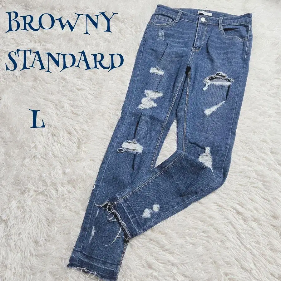 [브라우니 스탠다드] 스트레치 데미지 스키니 데님 청바지 L 파랑