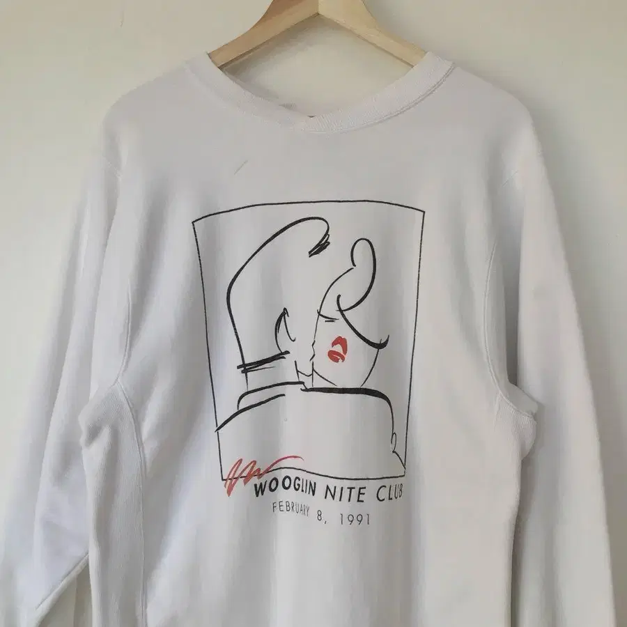디테일: 90년대 미국제, 바디는 헤인즈의 리버스 위브 스타일이 사용되었습니다. 프론트의 노스탤지어 그림체와 뒷면의 로고가 멋지며, V넥 같은 넥 리브도 좋은 악센트가 되고 있습니다. 사이즈도 빅, 경년의 데미지를 포함하여 구제 의류다운 매력이 있는 아이템입니다. 이 기회에 추천합니다.