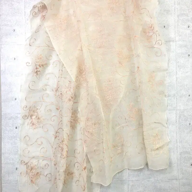 레트로 오리엔탈 구제 의류 엑조틱 보타니컬 자수 쉬폰 스톨