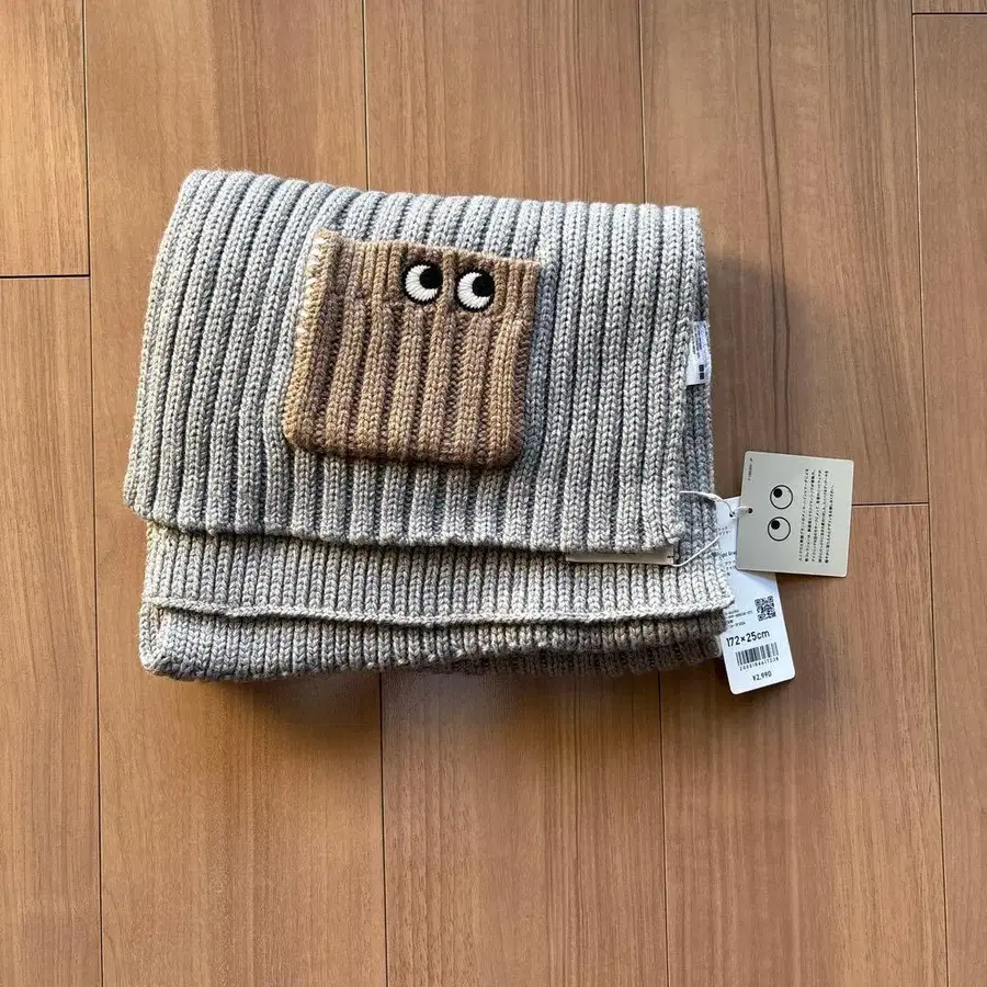 라이트 그레이 머플러 눈 달린 포켓 부착 172 x 25cm