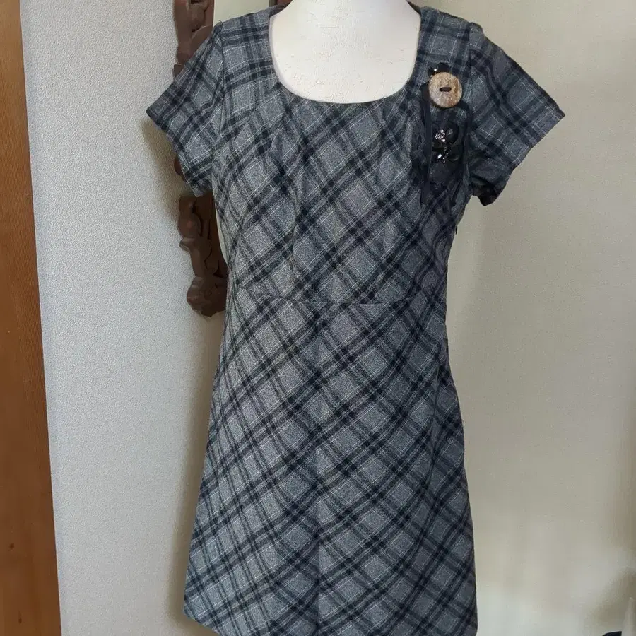 그레이 계열 체크 반팔 원피스입니다. 겨드랑이 부분에 지퍼가 있습니다. 가슴 부분의 버튼과 비쥬 장식이 멋스럽습니다. 구매 후 한 번도 입지 않고 보관만 했습니다. 사소한 부분까지 신경 쓰이시는 분은 구매를 삼가해 주시기 바랍니다.