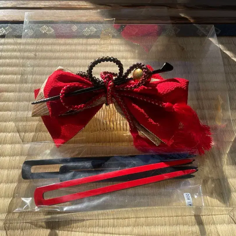 빨간색 일본 정통의상 소품 헤어콤 머리 장식 세트