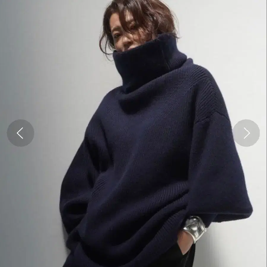 ETRETOKYO 와이드 칼라 터틀 니트 오버 사이즈 네이비