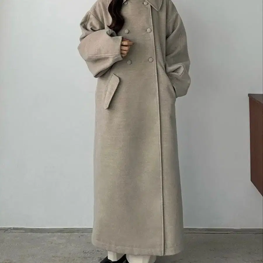 [ 미사용 새상품 ] 베이지 더블 브레스트 롱 코트