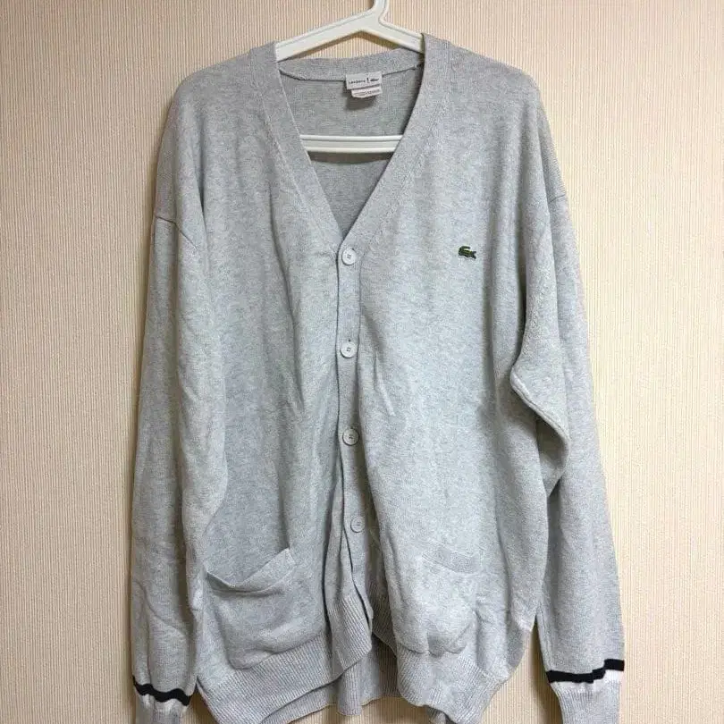 자동 번역되었어요. 원문보기LACOSTE의 그레이 색상 버튼 가디건입니다. 포켓이 있고 스트라이프가 들어간 리브가 특징입니다.