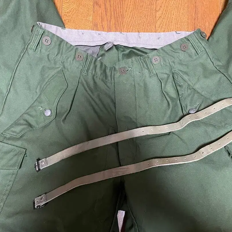 M59 카고 팬츠입니다. 후반기 제품과 달리 전반기 제품은 무릎에 플리츠가 없고, 포켓에 플라스틱 대신 메탈 버튼이 사용되었습니다.