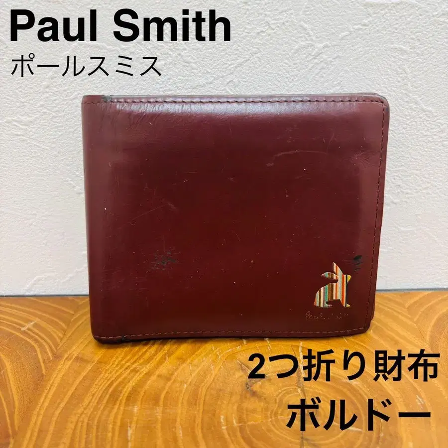 폴스미스 마케트리 스트라이프 토끼 가죽 이단 접이식 지갑 보르도