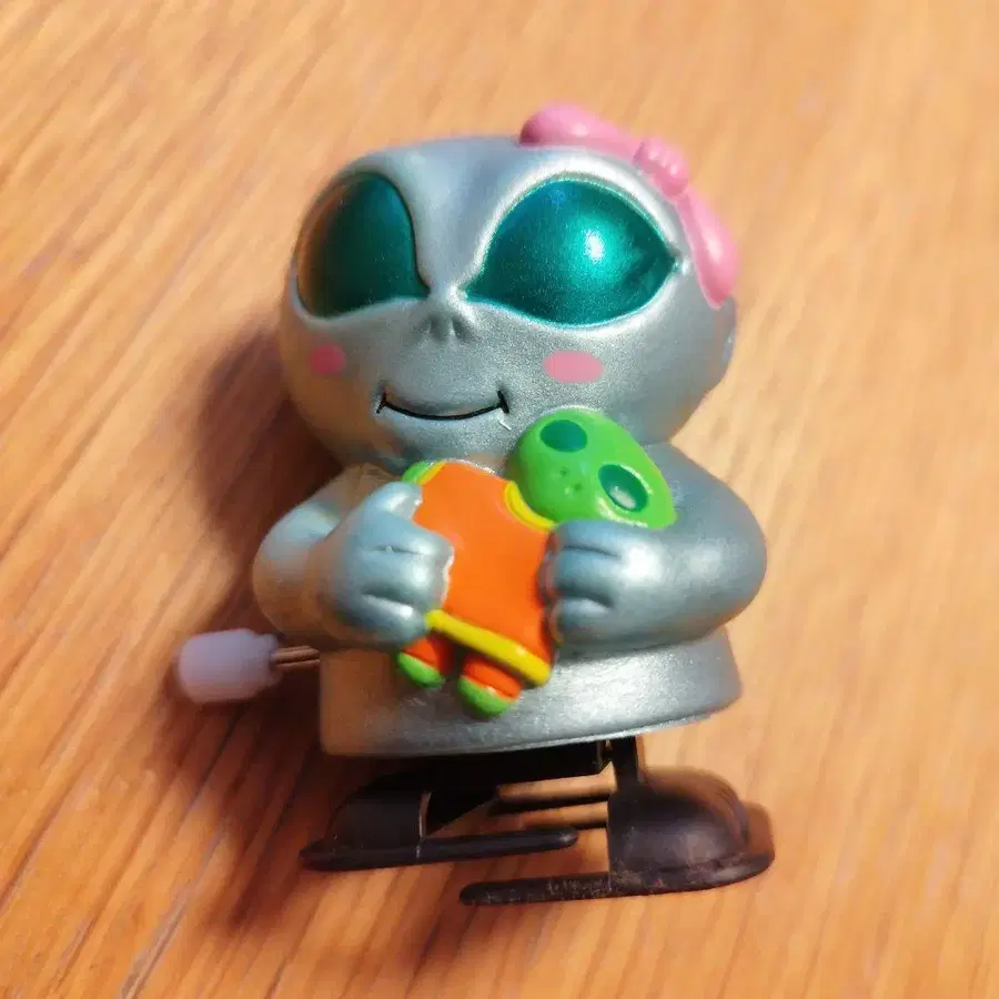 메탈릭 블루 색상의 몸체에 핑크색 리본, 그리고 작은 에이리언 아기를 안고 있는 매우 희귀한 디자인입니다.