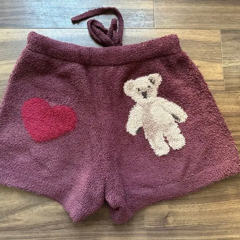 곰 자수와 하트가 귀여운 플리스 숏팬츠.