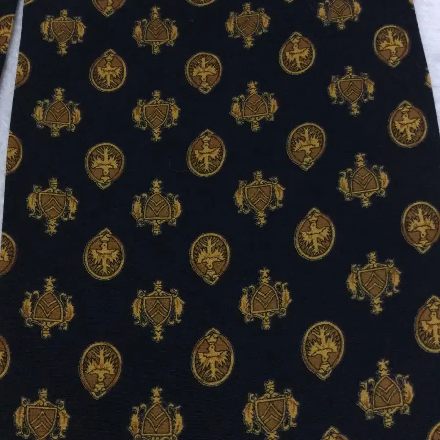 DKNY 애스콧 타이 100% LAYON 블랙 골드 문장 디자인