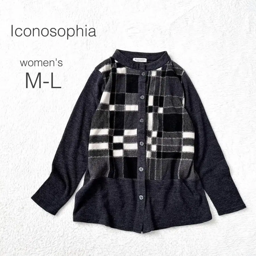 Iconosophia 이코노소피아 스탠드 카라 가디건 긴팔 체크 긴 길이 캐주얼 페미닌 가을/겨울 컨디션 최상