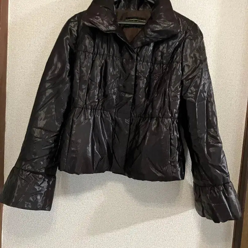 샤이니 퍼플 플레어 슬리브 숏 기장 다운 자켓