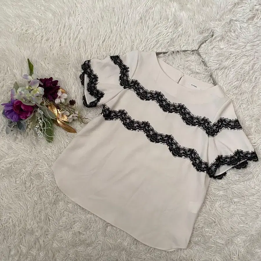 레이스 달린 반팔 상의입니다!