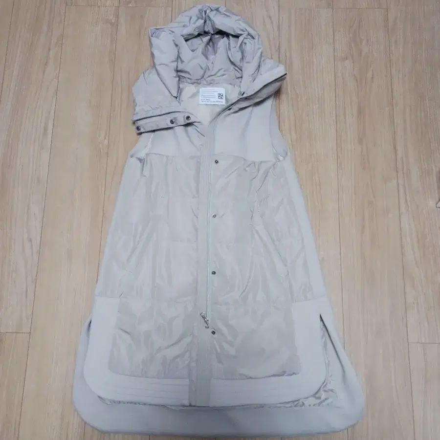 베이지 후드 부착 다운 베스트 긴 길이