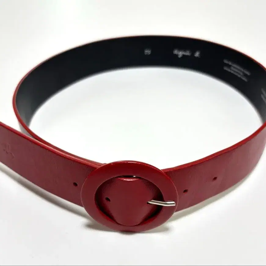 아네스베 가죽 벨트 빨간색 원형 버클 프랑스제