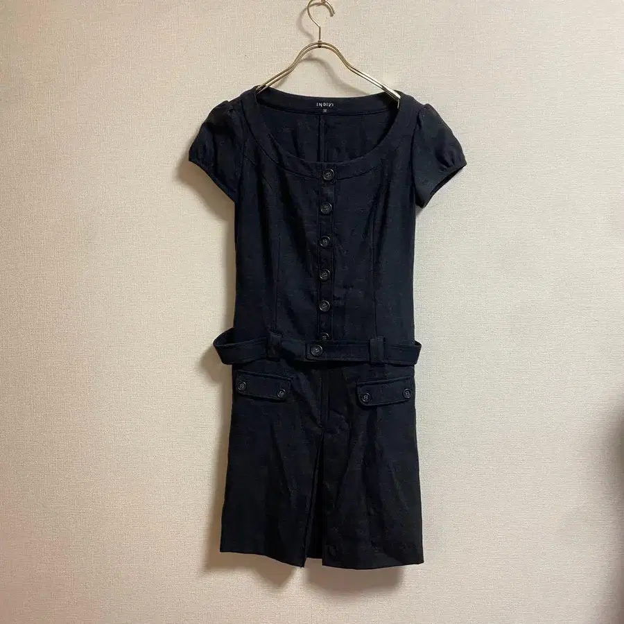 INDIVI 다크 그레이 반팔 원피스 [ M ] 허리 벨트 스타일 좋음