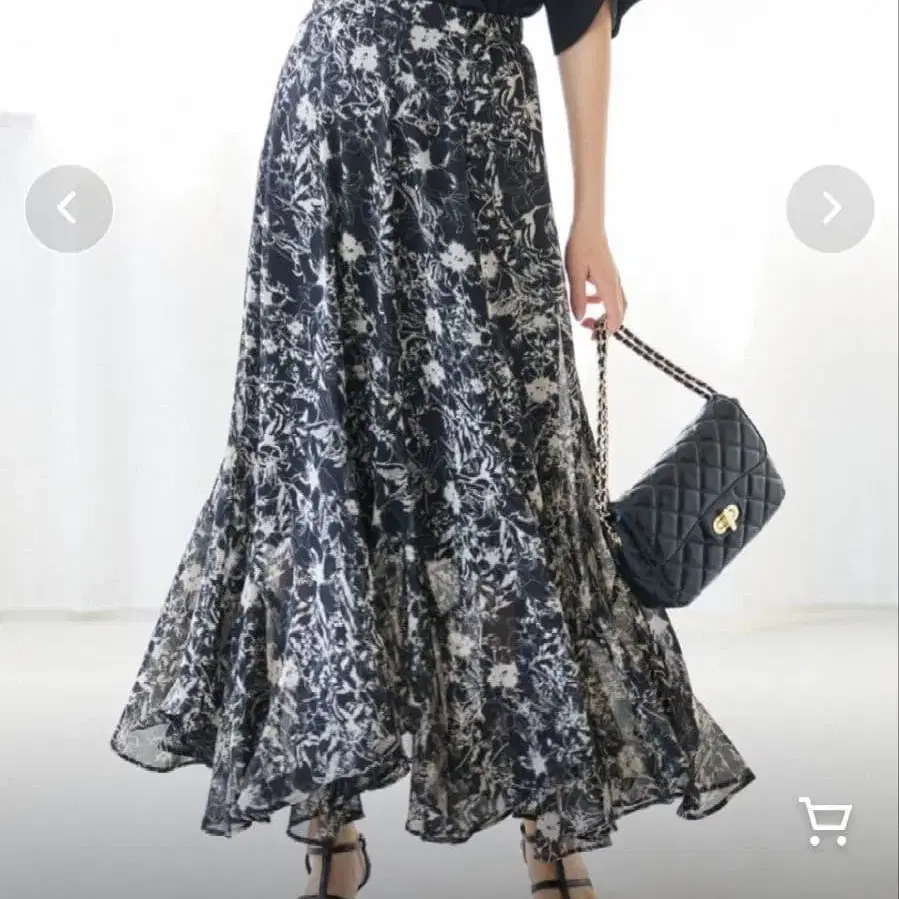 스컬 머메이드 스커트 꽃무늬 블랙 계열 프릴 스커트 안감 부착