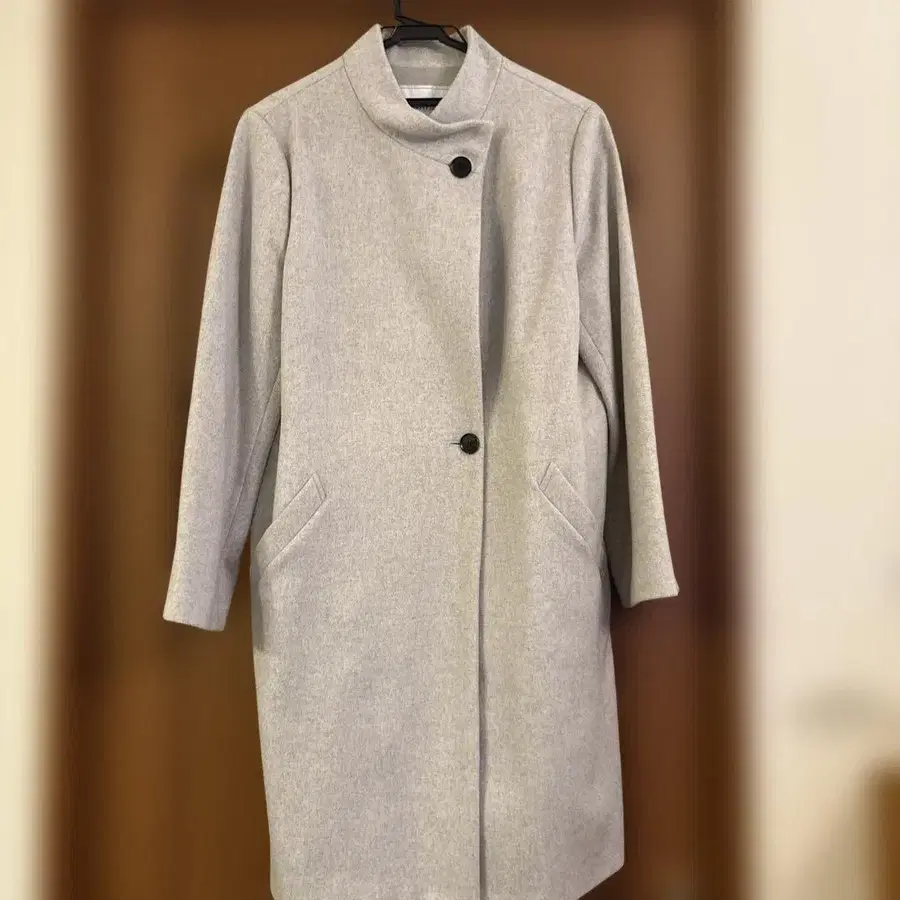 자동 번역되었어요. 원문보기심플한 디자인의 그레이 롱 코트, 버튼과 포켓 부착.
