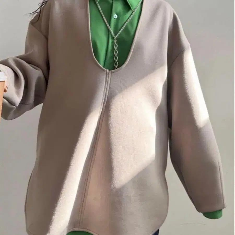 ameri vintage 오버 사이즈 V넥 맨투맨 베이지
