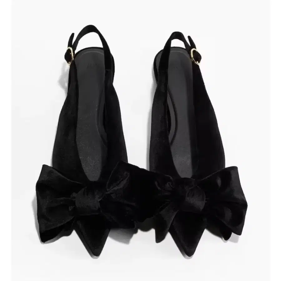 H&M 블랙 벨벳 스틸레토 플랫슈즈 벨로아 37
