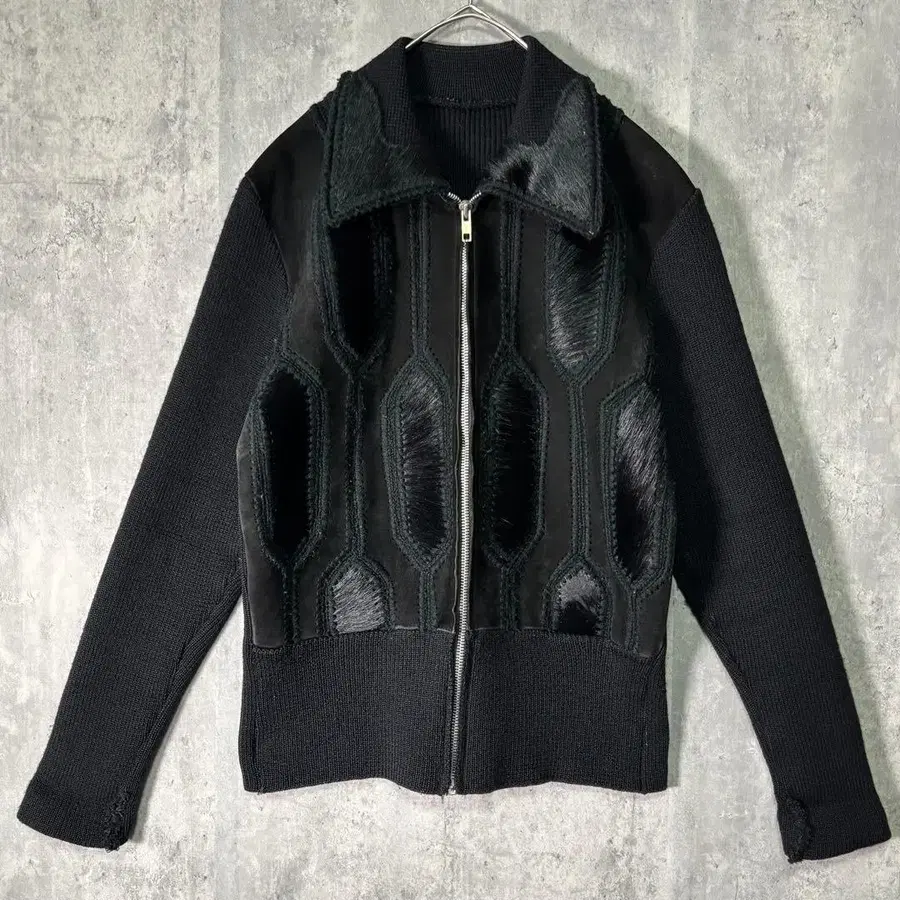 가죽 퍼 니트 절개 자켓 블랙 패치워크