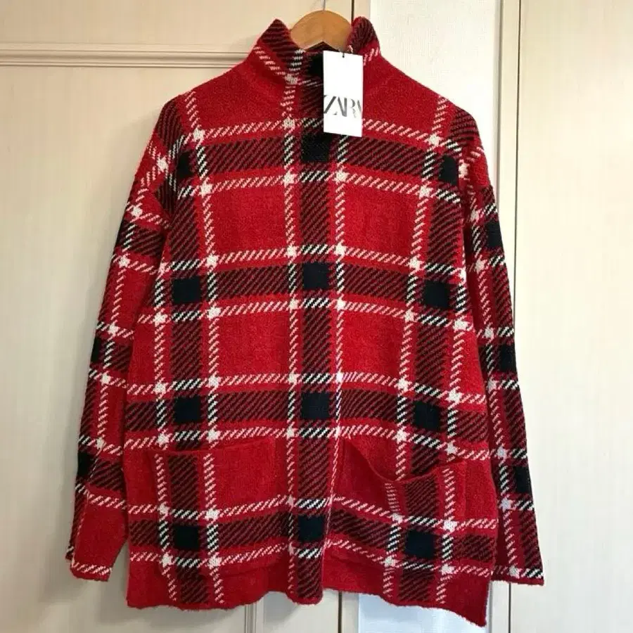 [ 새상품 ] ZARA 오버 사이즈 터틀 체크 스웨터 크리스마스