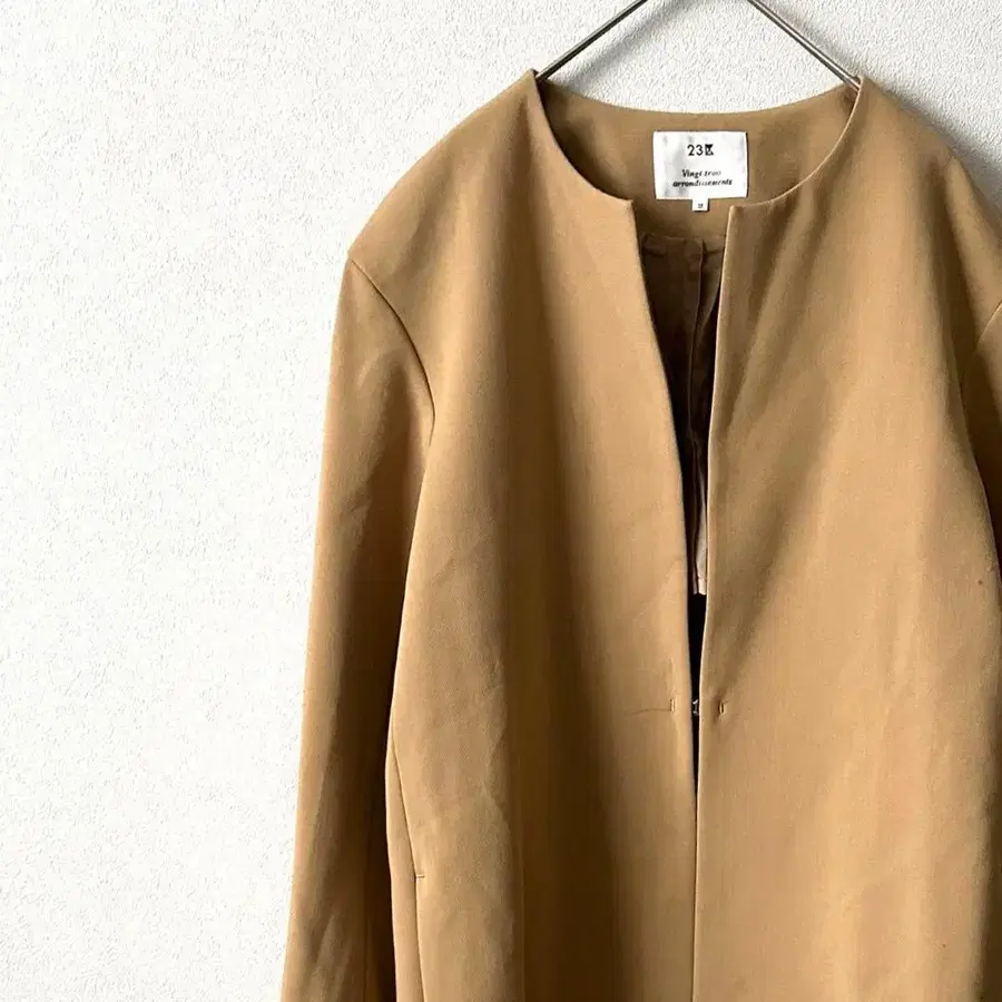 베이지 노카라 자켓 플레어 밑단