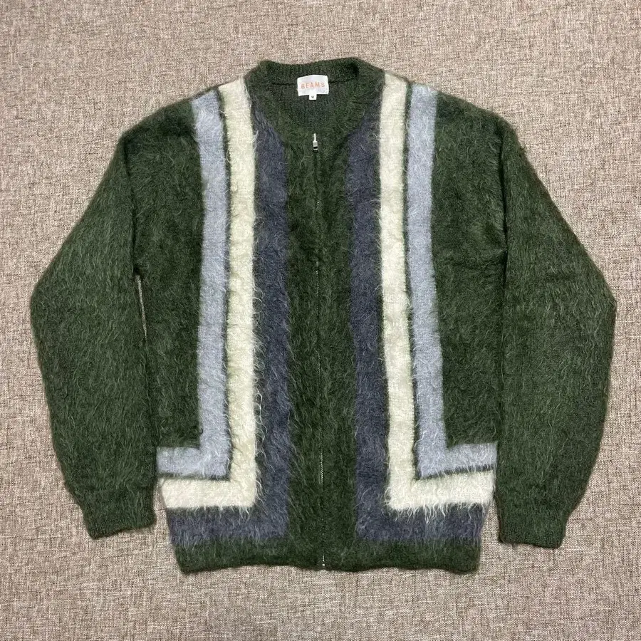 BEAMS 그린 계열 스트라이프 가디건 M